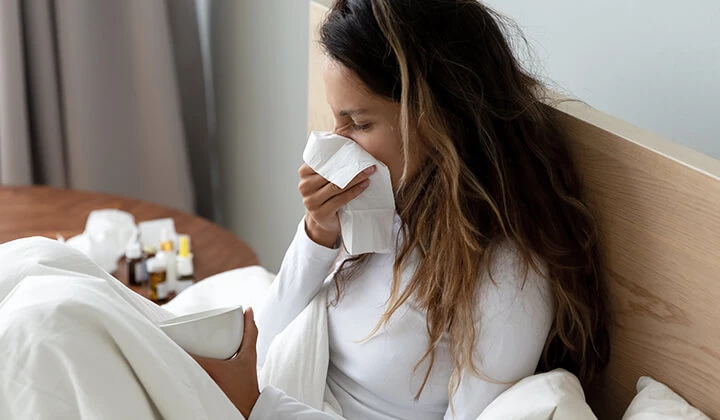 Eine Erkältung folgt in der Regel einem typischen Verlauf. Sie startet mit Halsschmerzen, dann folgen Schnupfen und Fieber und zum Schluss bleibt der Husten.