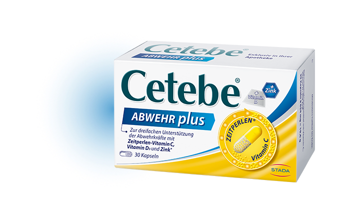 *Cetebe ABWEHR plus und Cetebe Abwehr Fit – Vitamin C, Vitamin D und Zink tragen zu einer normalen Funktion des Immunsystems bei.
